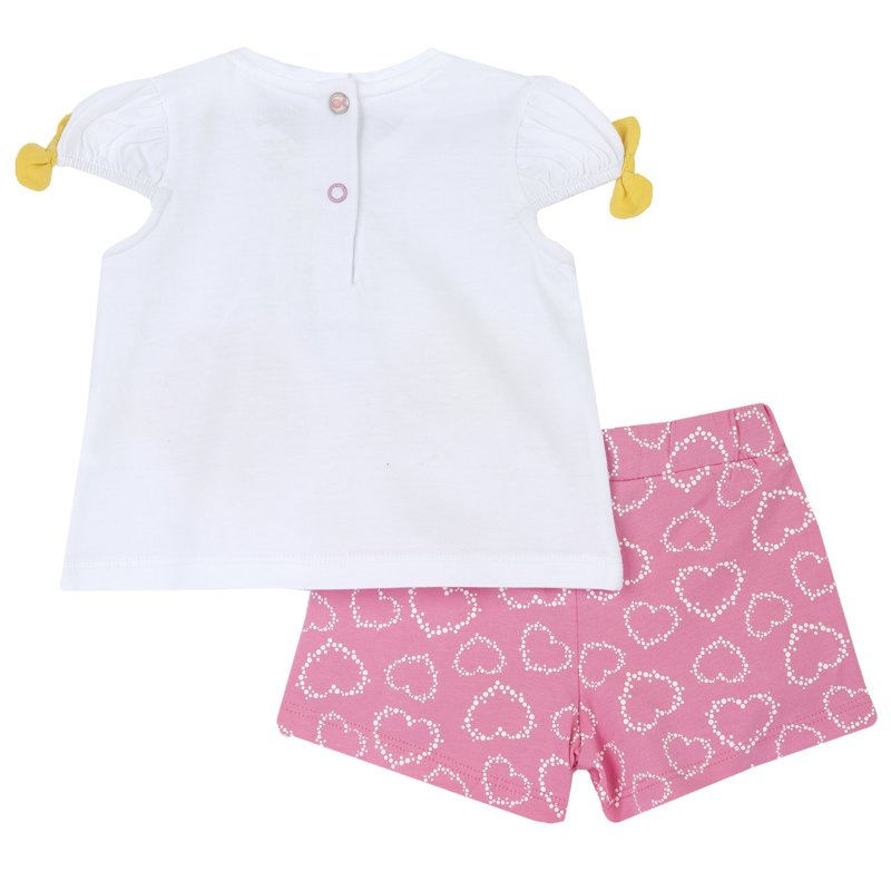 SET 2: T-SHIRT SHORT SLEEVE + SHORTS - WHITE/PINK